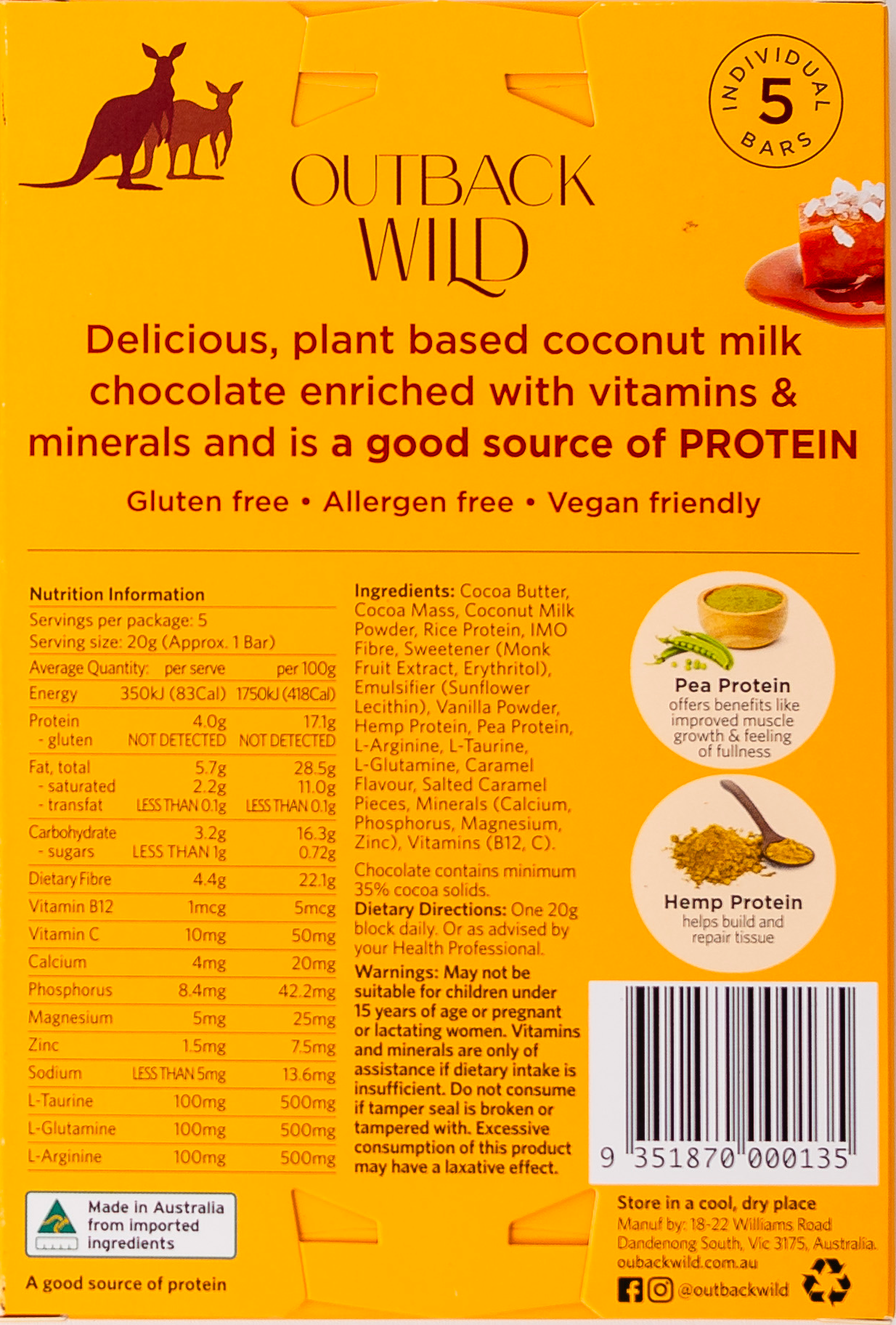 IMO Fiber, Cocoa Butter, Coconut Milk Powder, Cocoa Mass, Sunflower Lecithin, Monk Fruit Extracts, Rice Protein, Erythritol, Hemp Protein, Pea Protein ,L-Arginine, L-Glutamine, L-Taurine, Minerals(Calcium, Magnesium, Zinc, Phosphorus) Vitamins(B12, C)